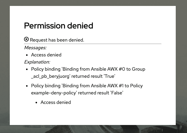 Afterwards, try to access the application again. You will now see a message explaining which policy denied you access: